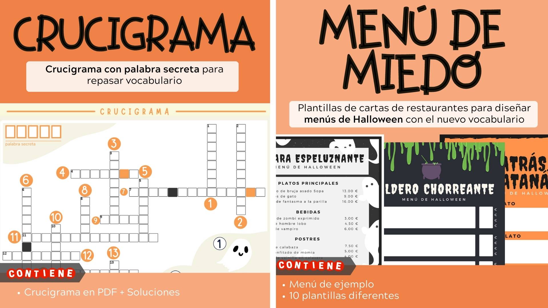 Crucigrama + Menú de miedo