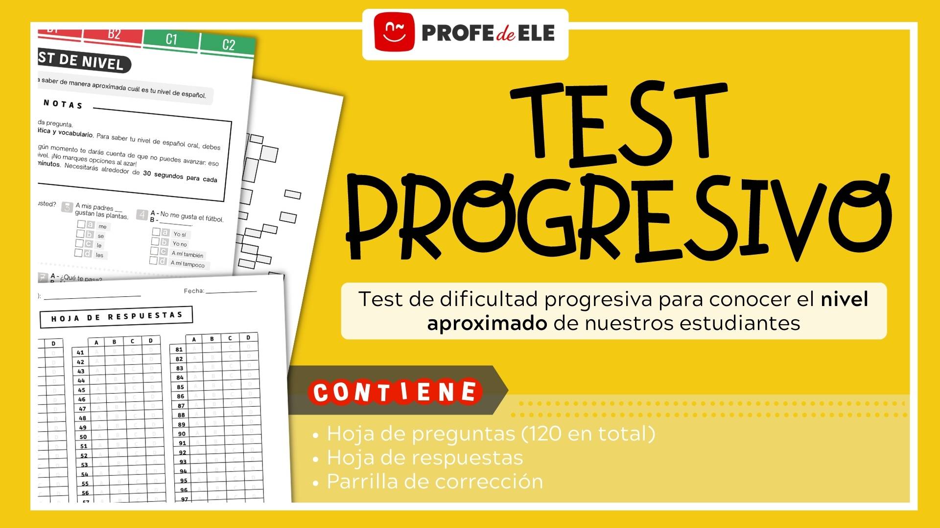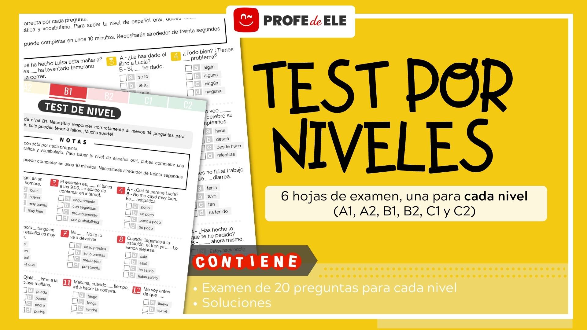 Descarga Nº156 ¿Qué encontrarás en esta descarga? ⭐ Un test de nivel progresivo con hoja de respuestas y parrilla de corrección para determinar el nivel aproximado de los alumnos ⭐ Test de 20 preguntas para cada nivel (desde A1 hasta C2) ⭐ Materiales para la prueba oral (preguntas y criterios de evaluación)