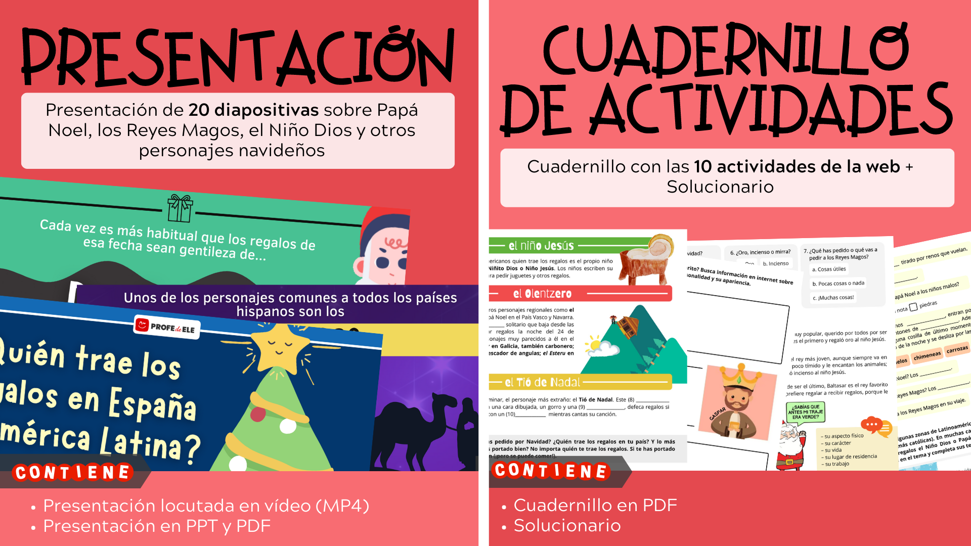 Descarga Nº161 ¿Qué encontrarás en esta descarga? ⭐ Presentación en vídeo, PPT y PDF ⭐ Cuadernillo de actividades con soluciones ⭐ 10 plantillas para escribir cartas + carta de ejemplo ⭐ Cuestionario para amigo invisible (Secret Santa) ⭐ Desplegables de los tres Reyes Magos y Santa Claus ⭐ Regalos preguntones: juego interactivo en PPT para hablar de la Navidad