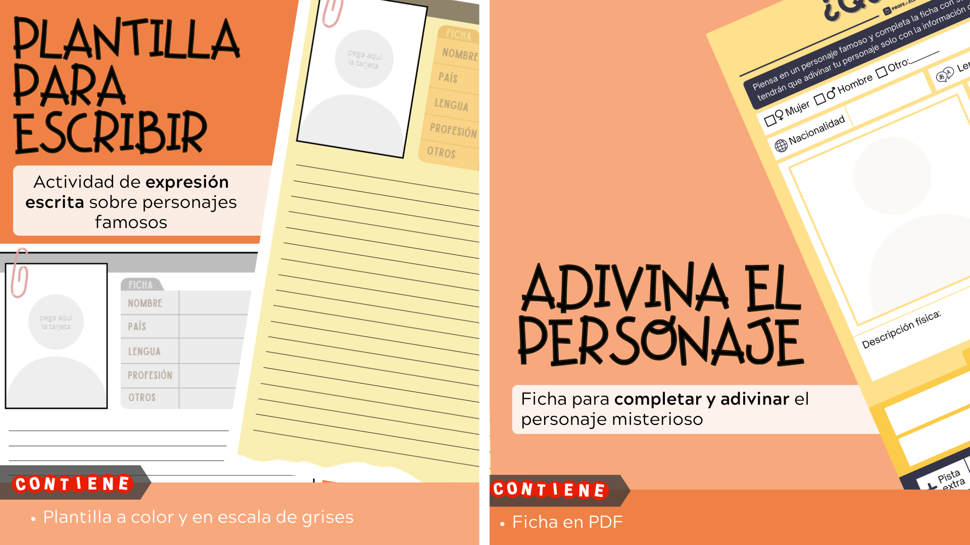 Plantilla para escribir + Adivina el personaje