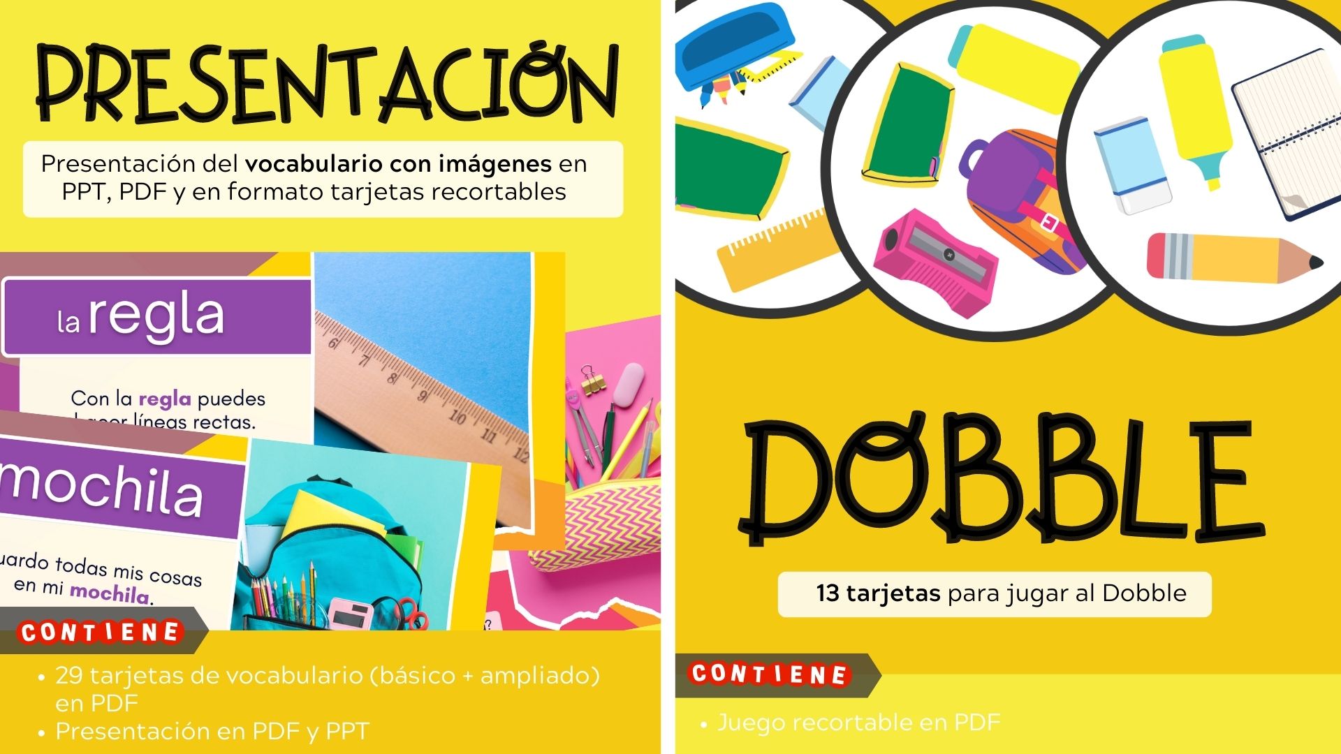 ⭐ Presentación del vocabulario básico (15 palabras) y ampliado (29 palabras) en PDF y PPT + tarjetas para imprimir.
