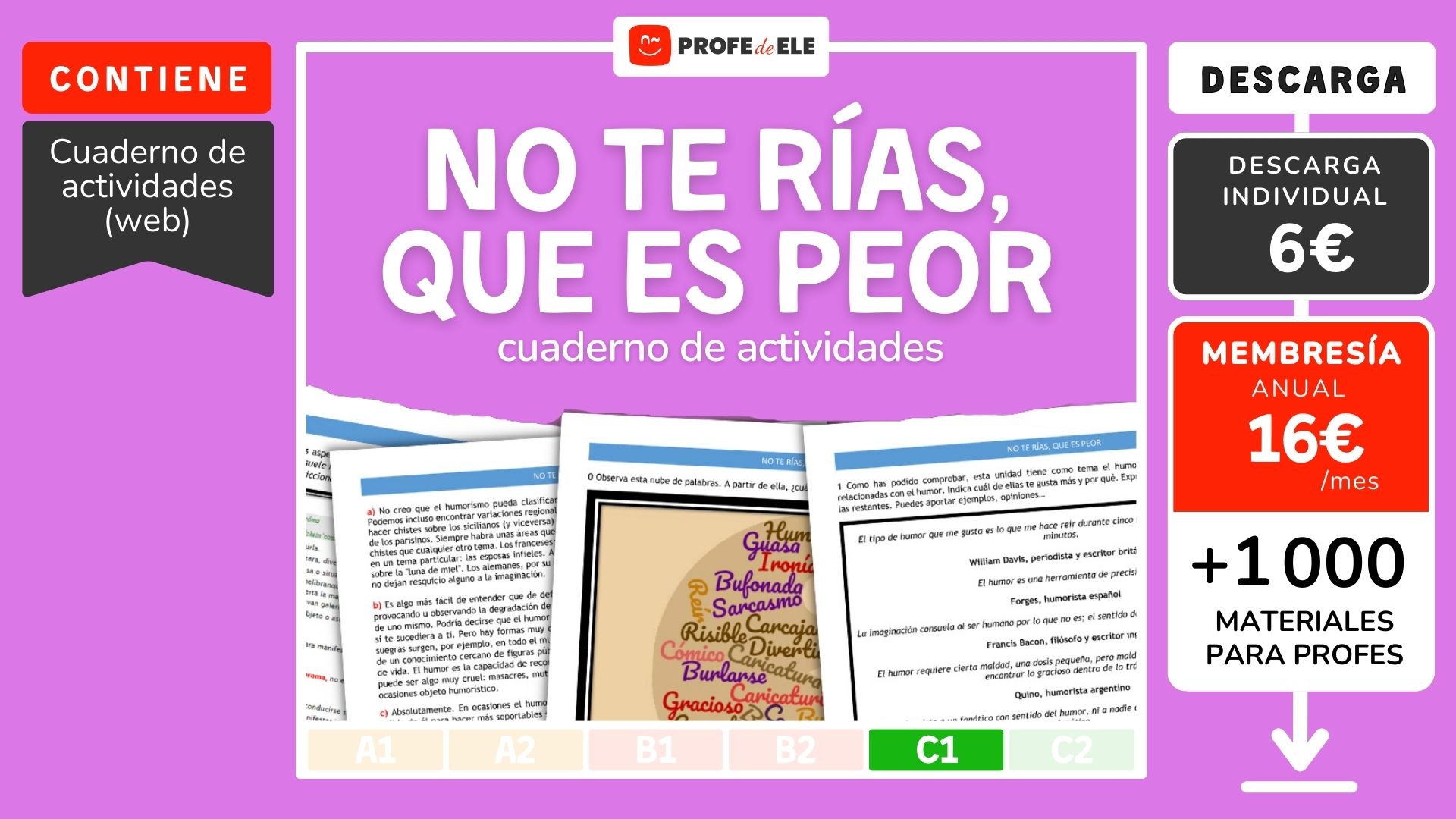 Accede a este material y a otros más de 300 packs con más de 1000 materiales descargables para ahorrarte infinitas horas de trabajo y lograr que a tus estudiantes les encante estudiar español contigo.