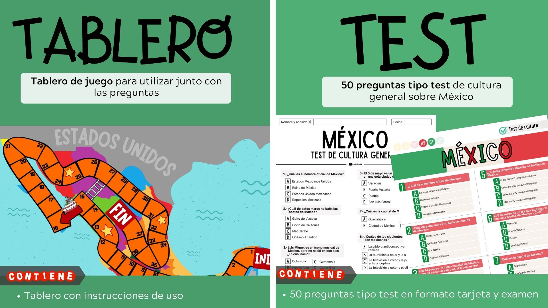 ⭐ 50 preguntas en formato tarjeta, en formato examen y en formato interactivo en PPT