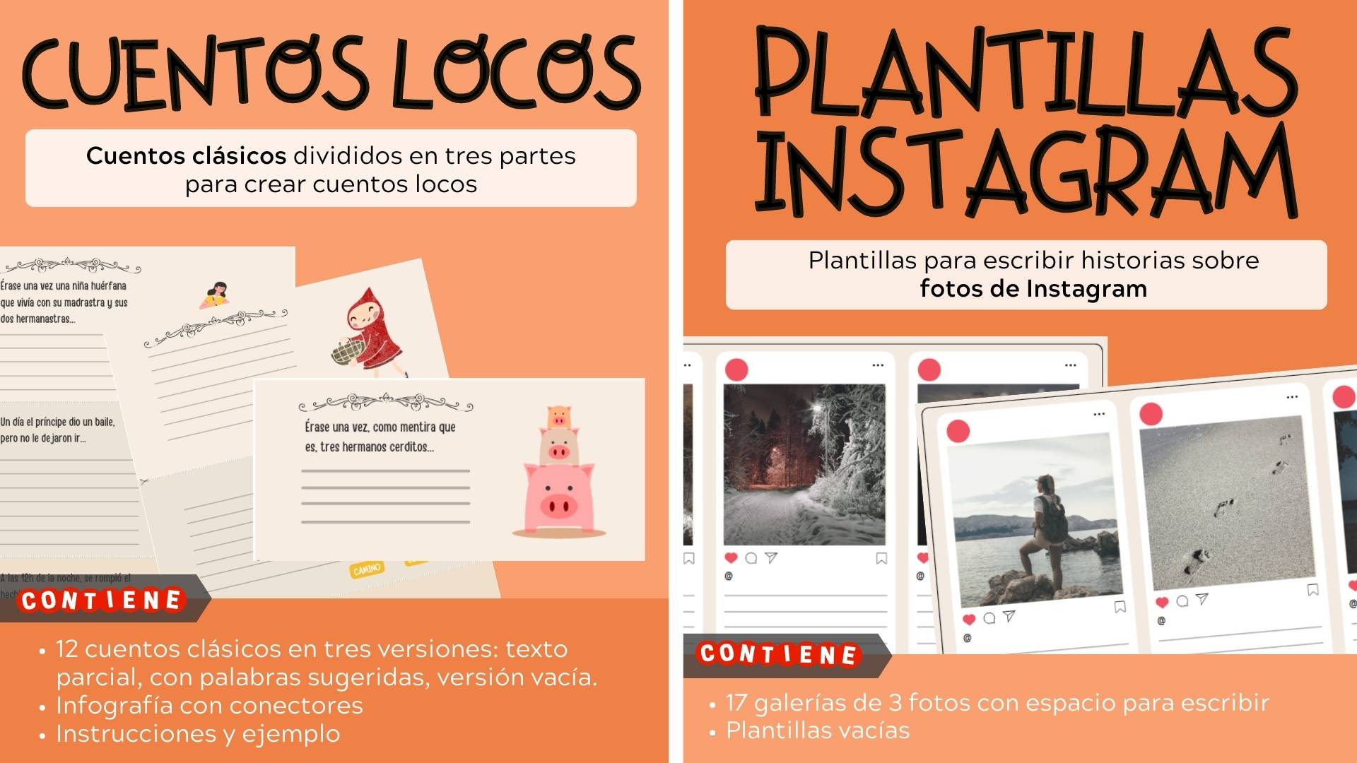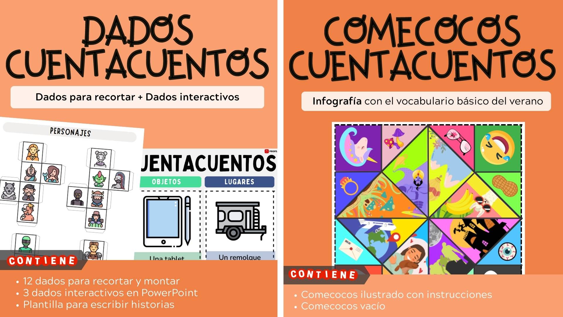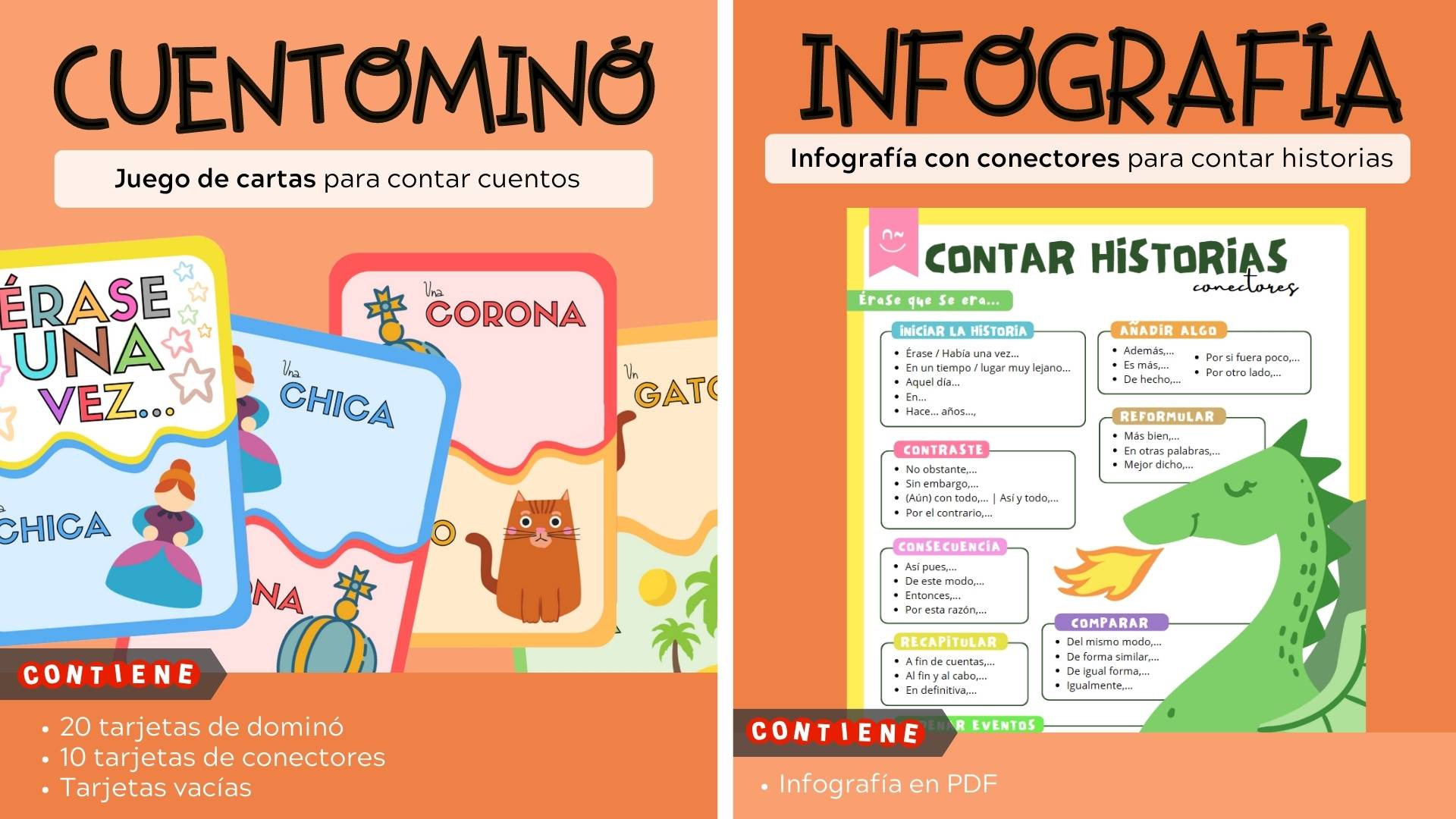 Descarga Nº208 ¿Qué encontrarás en esta descarga? ⭐ Fichas de personajes, objetos y lugares para recortar ⭐ Juego de historias colaborativas "Cuentominó" ⭐ Comecocos y dados cuentacuentos ⭐ Plantillas para escribir historias en Instagram ⭐ Infografía de conectores discursivos ⭐ Fichas para diseñar personajes ⭐ Cuentos clásicos para mezclar ⭐ ¡y más!