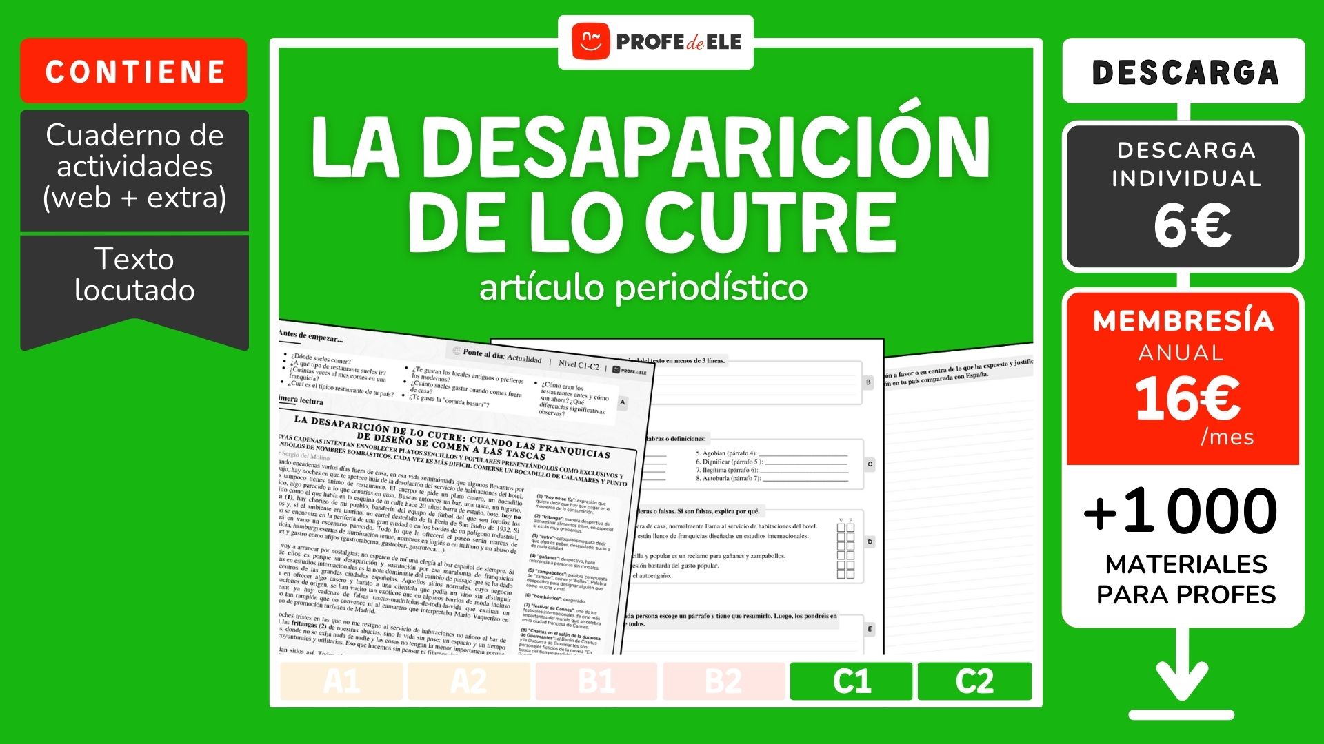 Accede a este material y a otros más de 300 packs con más de 1000 materiales descargables para ahorrarte infinitas horas de trabajo y lograr que a tus estudiantes les encante estudiar español contigo.
