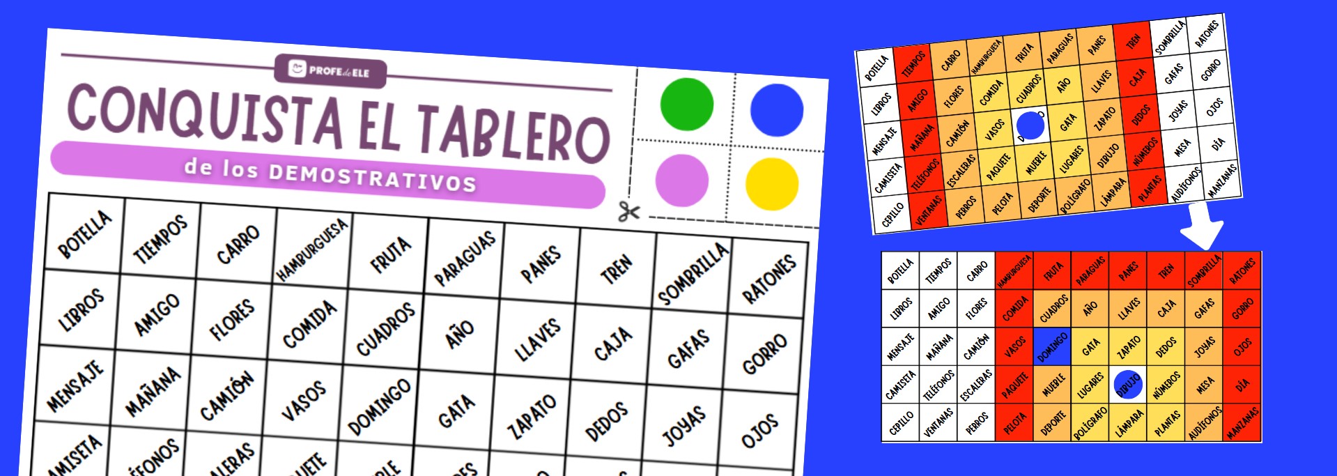 ✅ Juego competitivo de 2 a 4 jugadores para repasar los demostrativos (incluye fichas, tablero e instrucciones)