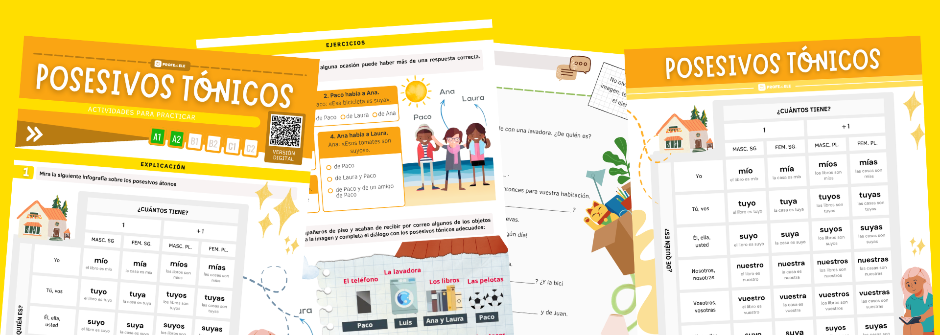 ⭐ Cuaderno de actividades de los posesivos tónicos (A2) (web) + test final