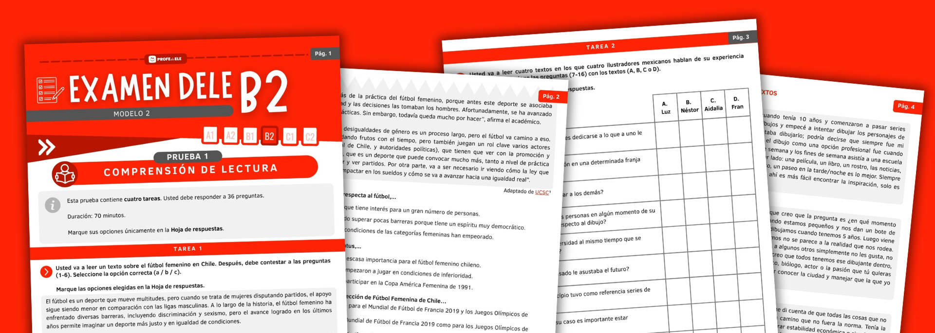 Nuestro modelo 2 del examen DELE B2 completo (diferente al disponible en la entrada web) creado por ProfedeELE con las cuatro pruebas: