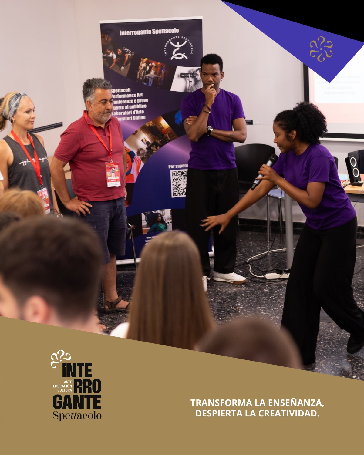 Interrogante Spettacolo es una compañía internacional de teatro y creación artística con sede en Milán. Fundada por la actriz y docente Kalua Rodríguez, la compañía combina el teatro, la educación y la cultura para promover el aprendizaje del español a través de experiencias artísticas innovadoras. Ha colaborado con el Instituto Cervantes de Milán y otras instituciones de renombre en proyectos de formación docente.