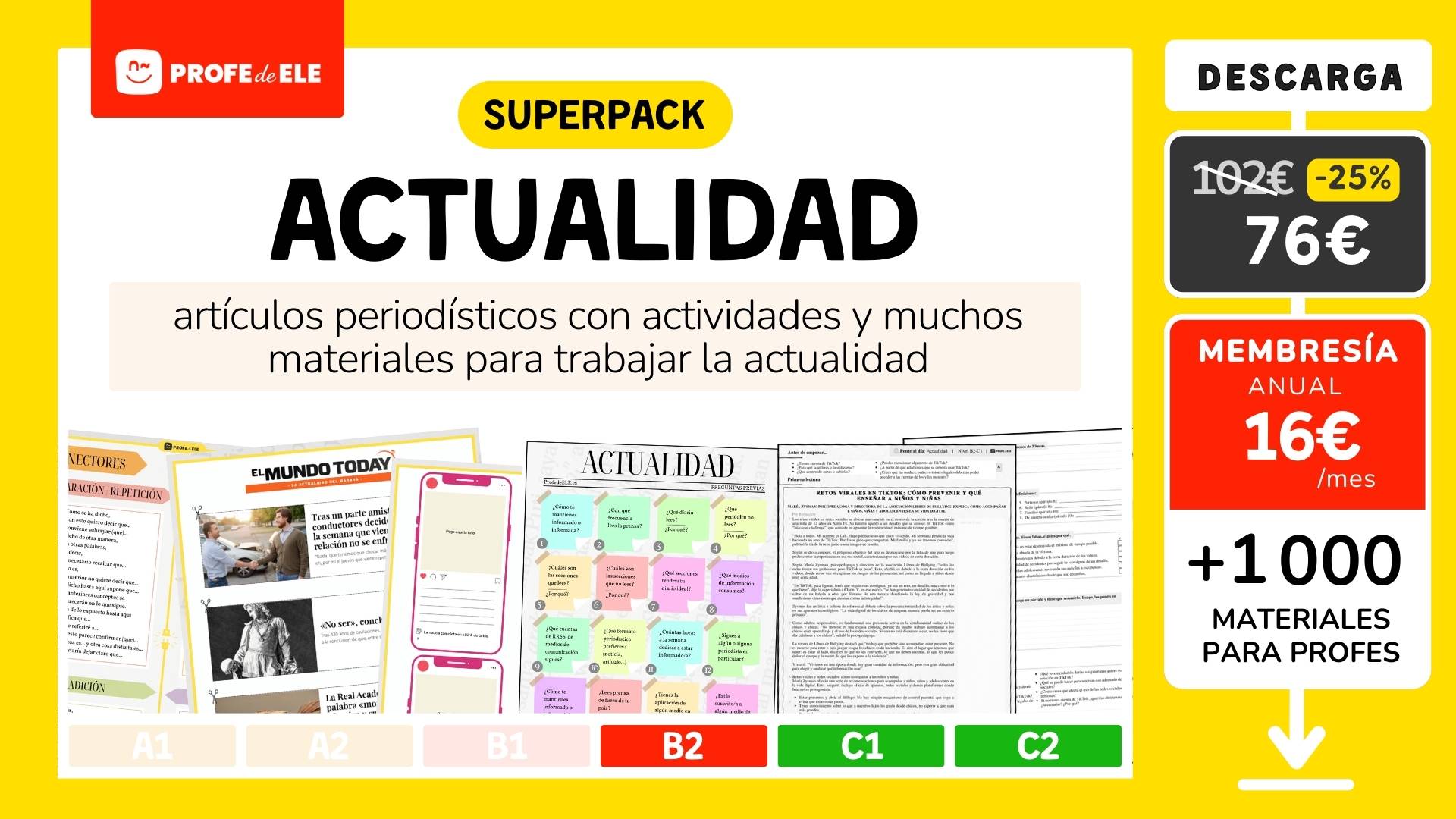 La descarga incluye 15 artículos periodísticos en PDF con actividades + Pack de materiales para trabajar la actualidad: